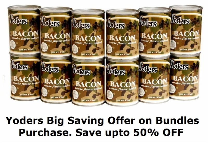 Yoders Bacon Offer Red Feather Butter Lowest prices on Internet Get extra 10 off when you buy 2 cases use Code EXTRA10 Get extra 50 off when you buy 10 cases use Code YODERS50 Case of Yoders Bacon LIST PRICE. Its fully precooked so youre not paying for what cooks away. Up to 7 cash back Yoders Canned Bacon 3 Cans Pack Emergency Food Fully Cooked Ready to Eat 40 to 50 Slices per Can Average Rating.
